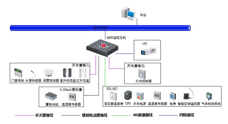 ●最新的485協(xié)議動態(tài)庫,業(yè)界領(lǐng)先。設(shè)備接入方式支持:UPS、開關(guān)電源、交流電表、溫度濕度傳感器、氣體檢測系統(tǒng)、空調(diào)控制器、變壓器溫顯表、蓄電池組、門禁控制器、熱交換設(shè)備、位置服務(wù)模塊、發(fā)電機(jī)組、低壓配電設(shè)備、新能源供電系統(tǒng)、鐵塔UPS設(shè)備、直流電表、分路計量設(shè)備、鍵盤。