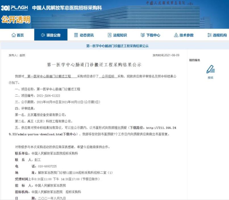 【嘉恒業(yè)績(jī)】恭喜北京嘉恒中標(biāo)301中國(guó)人民解放軍總醫(yī)院第一醫(yī)學(xué)中心腸道門診搬遷工程-裝修裝飾工程