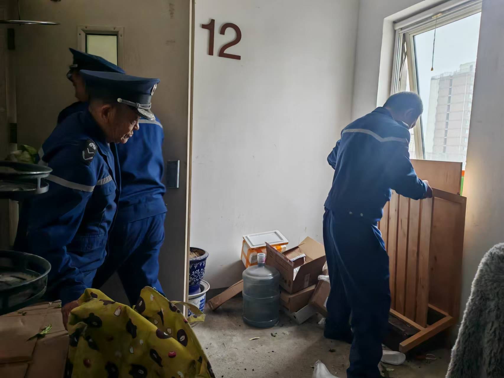 之后,記者又來到西城區(qū)槐柏樹街南里西區(qū),消防部門正聯(lián)合社區(qū)在5號(hào)樓10單元開展樓道堆物堆料的清理工作。