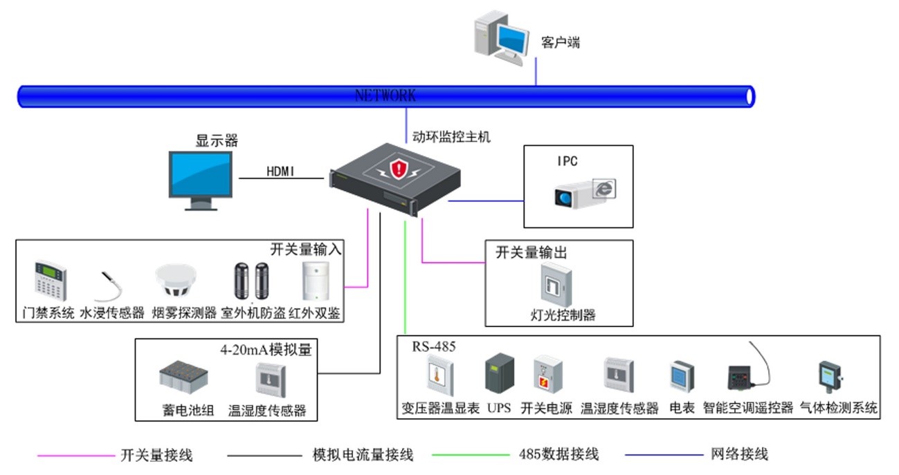 ●支持RS485接入外部設(shè)備,包括UPS,智能電表,開(kāi)關(guān)電源,溫濕度傳感器,氣體檢測(cè)系統(tǒng),空調(diào),變壓器溫顯表等。