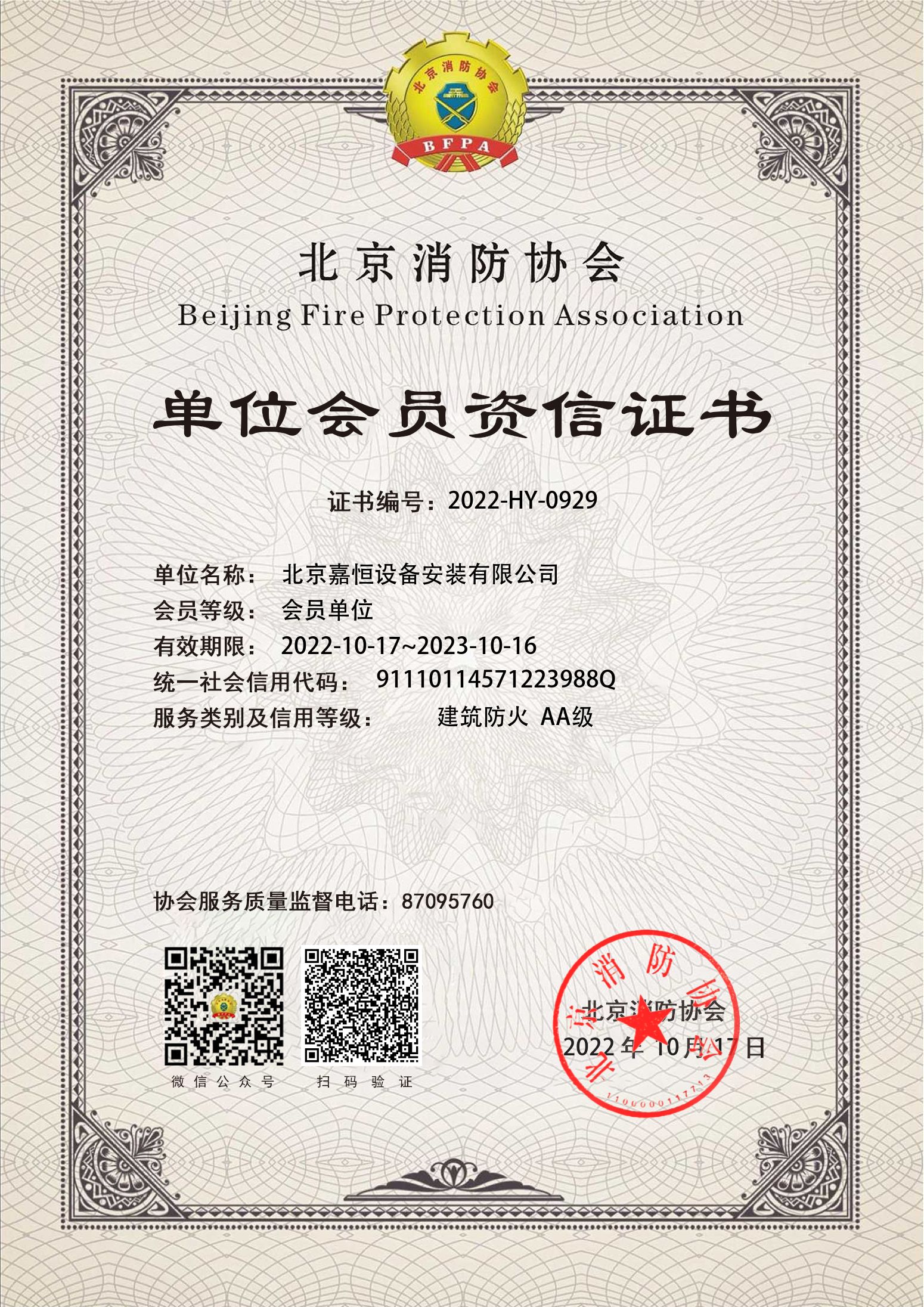 北京消防協(xié)會(huì)單位會(huì)員資信證書(shū)