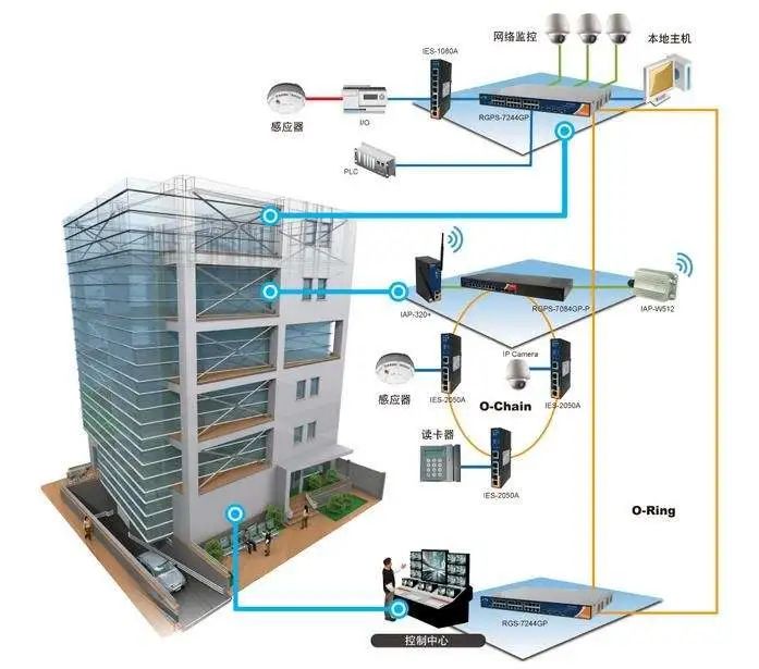 使用計(jì)算機(jī)、智能卡門(mén)鎖、讀卡器等設(shè)備,對(duì)各出入口狀態(tài)進(jìn)行設(shè)置、監(jiān)視、控制和記錄等,實(shí)現(xiàn)對(duì)建筑物各出入口統(tǒng)一管理,保證大樓安全,其拓?fù)浣Y(jié)構(gòu)和傳輸介質(zhì)因產(chǎn)品而異。