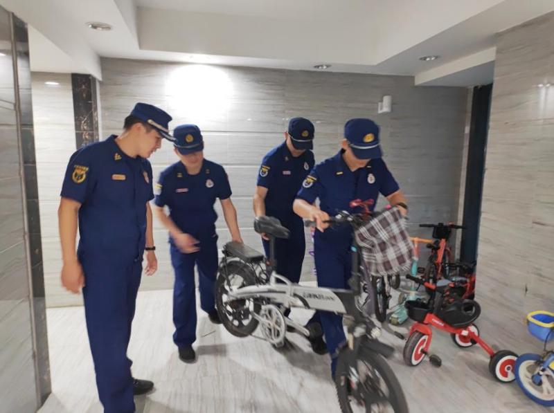 在平谷區(qū)北京城建樂知筑小區(qū)開展工作時發(fā)現(xiàn),剛剛檢查過的單元樓,在返回時,檢查人員發(fā)現(xiàn)一輛電動自行車赫然停在單元門廳入口處,隨即告知物業(yè)立即聯(lián)系車主。“車主聯(lián)系不上,也沒有登記信息,可能是剛進來的訪客……”,在得知無法與車主取得聯(lián)系,且未對入園電動自行車登記后,檢查組長楊戰(zhàn)軍支隊長立刻命令檢查員與物業(yè)人員共同將電動自行車移至樓外固定停放處,之后再由物業(yè)管理人員對車主進行告知,并開展消防安全教育,堅決杜絕此類事件發(fā)生。