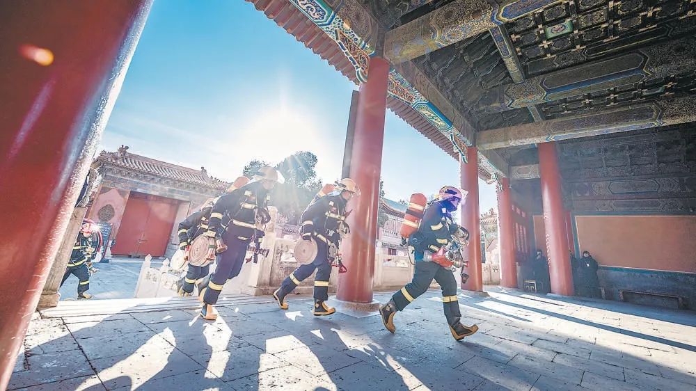 12月23日下午,北京市消防救援總隊在故宮博物院舉辦文物古建筑滅火救援教學式實戰(zhàn)演練。